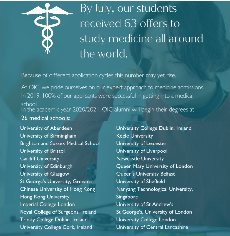 • Excellent success rate into Medical and Dental schools